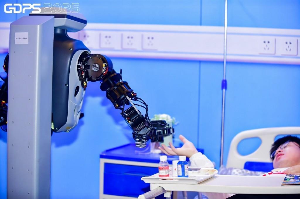 机器人将水杯递到裁判扮演的“病人”手中。主办方供图
