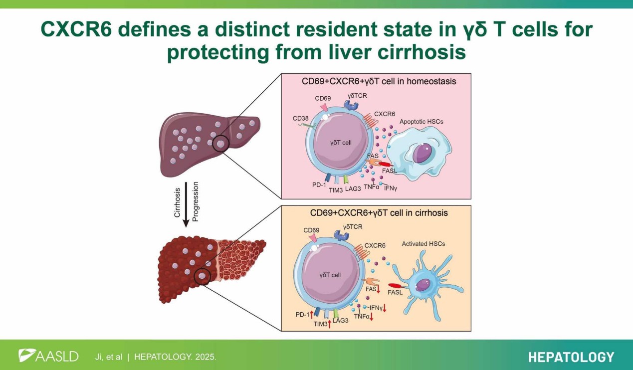 记者了解到,该研究聚焦于γδ T细胞在肝纤维化进程中驱动保护性与致病性应答平衡的细胞与分子机制,进行了深入且细致的探索。研究团队将目光重点投向了一群特殊的CD69+ CXCR6+ γδ T细胞群体。通过大量的实验观察与分析发现,在肝硬化组织中,这一细胞群体的数量会随着疾病严重程度的加剧而逐渐减少。这一现象提示,这群组织驻留型γδ T细胞在肝硬化疾病的发生发展过程中,极有可能扮演着关键角色,具有潜在的重要作用。