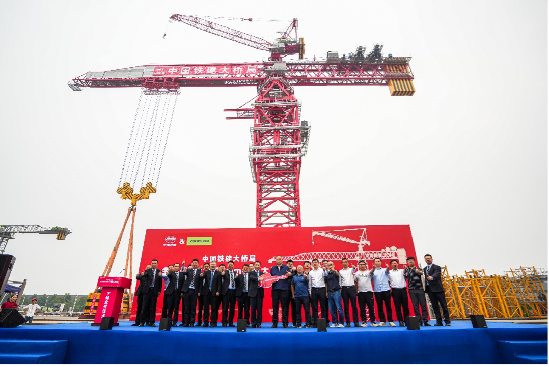 图为中联重科全球最大22000吨米级超大型塔机下线交付现场